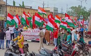 ବରଗଡ଼ : ସ୍ୱାଧୀନତାର ୭୫ ବର୍ଷ ଅମୃତ ମହୋତ୍ସବ ଅବସରରେ ବରଗଡ଼ରେ ତ୍ରିରଙ୍ଗା ଯାତ୍ରା ଅନୁଷ୍ଠିତ ହୋଇଯାଇଛି । ସ୍ଥାନୀୟ ଅଗ୍ରଗାମୀ ଯୁବକ ସଂଘ ଠାରୁ ଆରମ୍ଭ ହୋଇଥିବା ଏହି ତ୍ରିରଙ୍ଗା ଯାତ୍ରାକୁ ବରଗଡ଼ ଏସପି ପରମାର ସ୍ମିତ ପୁରୁଷୋତ୍ତମ ଦାଶ ଉଦଘାଟନ କରିଥିଲେ । ପରେ ଏହି ଯାତ୍ରା ମୁଖ୍ୟରାସ୍ତା ଦେଇ ବରଗଡ଼ ଗାନ୍ଧୀ ଛକକୁ ପହଂଚିବା ସହ ସେଠାରେ ଅତିଥିମାନେ ଜାତିର ପିତା ମହାତ୍ମା ଗାନ୍ଧୀଙ୍କ ପ୍ରତିମୂର୍ତିରେ ମାଲ୍ୟାର୍ପଣ କରିଥିଲେ । ବରଗଡ଼ ବିଧାୟକ ଦେବେଶ ଆଚାର୍ଯ୍ୟ, ପୂର୍ବତନ ସାଂସଦ ପ୍ରସନ୍ନ ଆଚାର୍ଯ୍ୟ , ଡାକ୍ତର ରାମକୃଷ୍ଣ ପୁରୋହିତଙ୍କ ସମେତ ସହରର ମାନ୍ୟଗଣ୍ୟ ବ୍ୟକ୍ତି , ବିଭିନ୍ନ ସଂଗଠନର କର୍ମକର୍ତା, ସ୍କୁଲ କଲେଜର ଛାତ୍ରଛାତ୍ରୀ ତ୍ରିରଙ୍ଗା ଯାତ୍ରାରେ ସାମିଲ ହୋଇଥିଲେ ।
